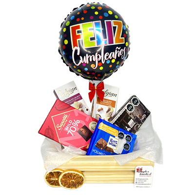 - Todo envuelto en papel celofán con cinta y tarjeta de saludo.