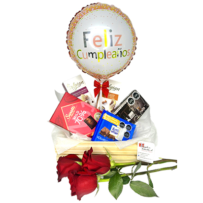 - Todo envuelto en papel celofán con cinta y tarjeta de saludo.